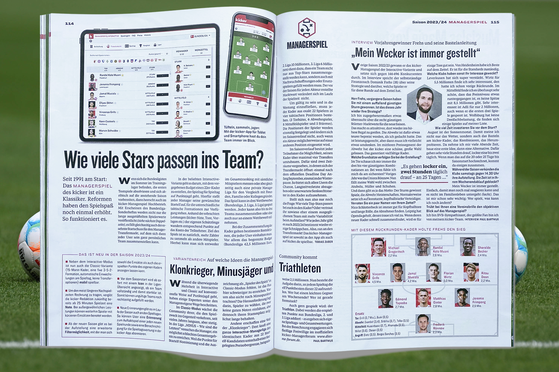 "Das Spiel ist mit der kicker-Datenbank verknüpft. Wenn ein Spieler den Verein wechselt, wird das im Managerspiel abgebildet. Wichtig ist, dass sich die Position und der Marktwert des Spielers im Laufe der Saison nicht ändern kann. Das kann bei einzelnen Spielern schon mal zu Vor- oder Nachteilen führen, wenn sie kurz vor Ende des Transferfensters wechseln oder auf einer anderen Position eingesetzt werden. Neuzugänge nach Saisonstart sind auch immer ein blödes Thema, weil die meisten Teams schon stehen. Aber wir können das natürlich nicht verhindern, nur uns entsprechend mit zusätzlichen Möglichkeiten drauf einstellen. Ein bisschen Glück gehört letztendlich auch immer dazu."